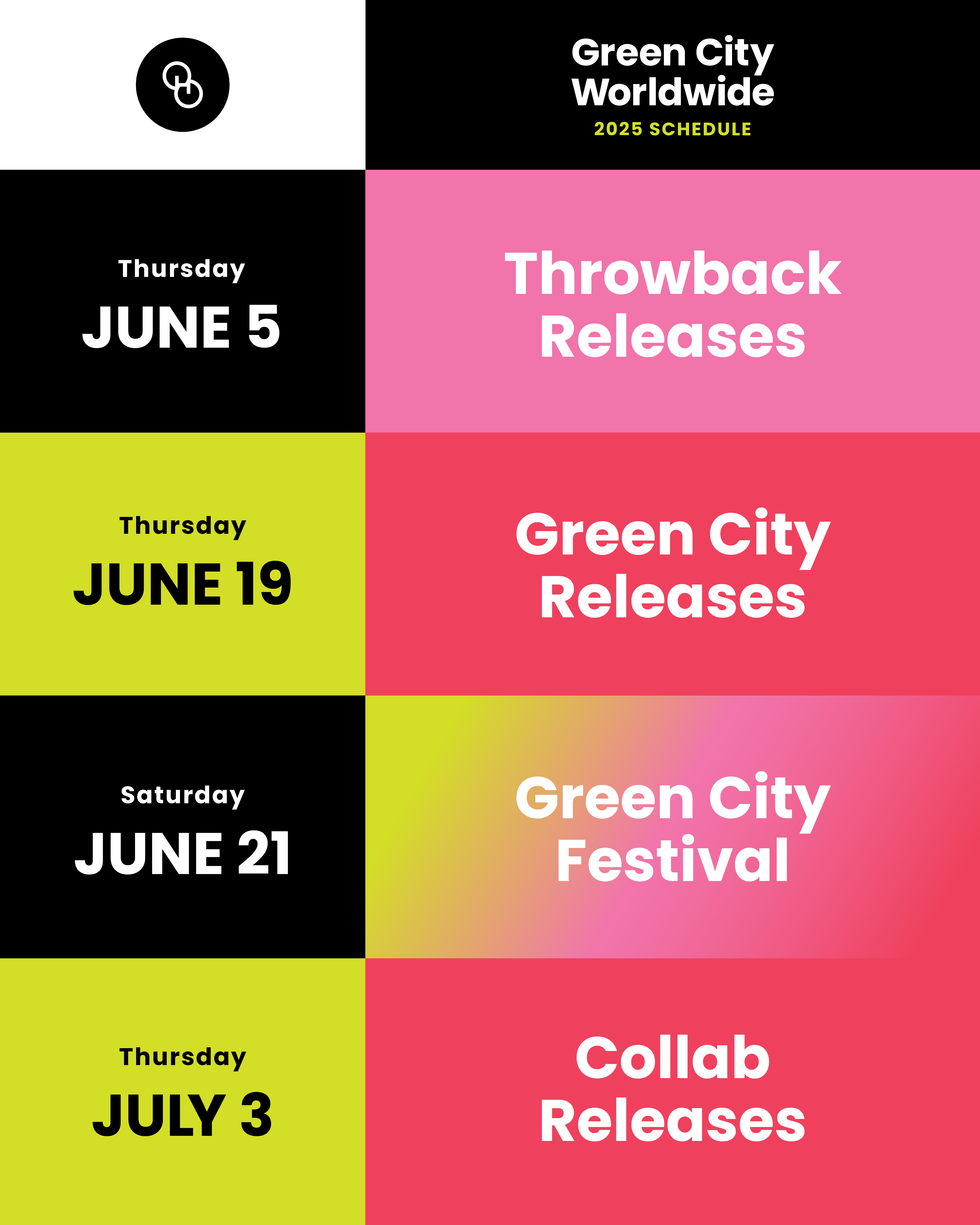 This year, we’ll have three weeks of Green City releases, starting Thursday 6/5, with some very special Green City Throwbacks.